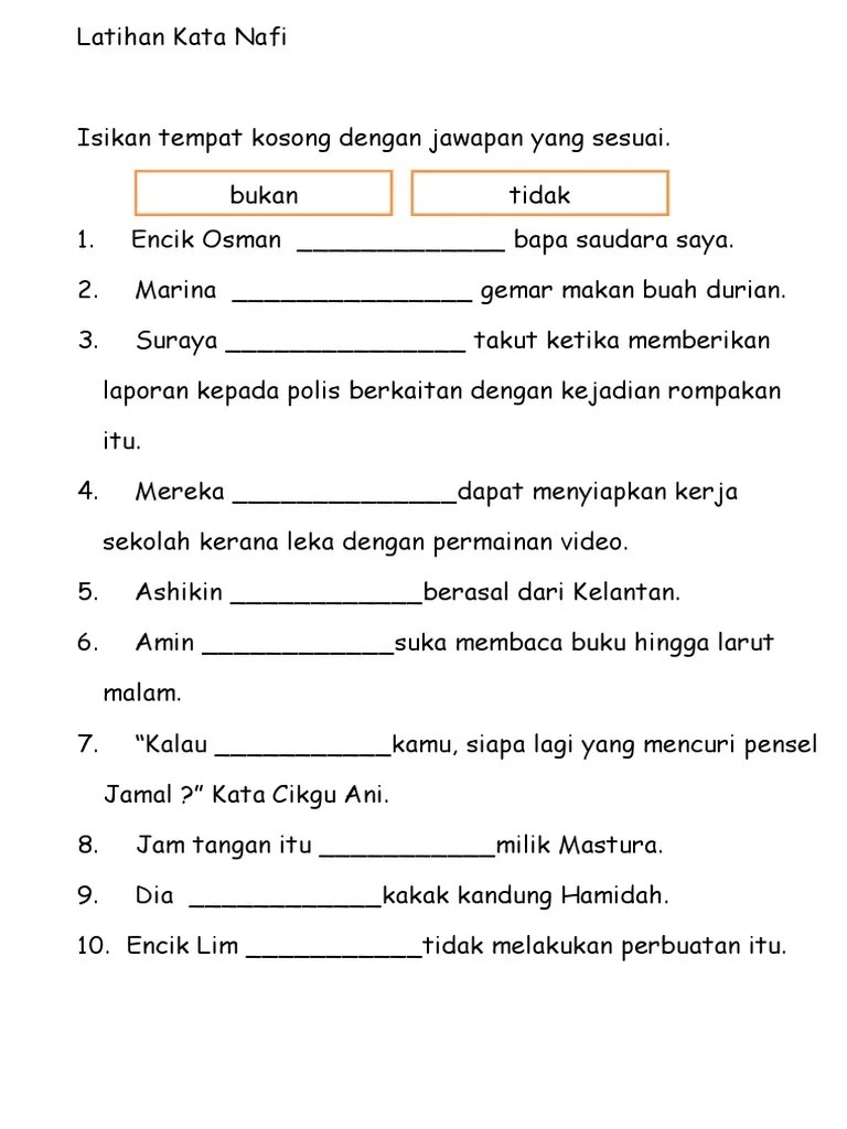 Di malaysia latihan ayat penyata tahun 2 latihan karangan ulasan . B.bina 5 ayat tanya dengan kata tanya. Kata arah mesti didahului oleh kata sendi nama di ke dan. Contoh kata arah tahun 2 materi pelajaran 1 kelas cikgu teng bm tahun 2. Puan boleh merujuk buku tatabahasa . Kata kerja online worksheet for tahun 4,5 &6. You can do the exercises online . Latihan bahasa melayu tahun 2 kata ganti nama diri.